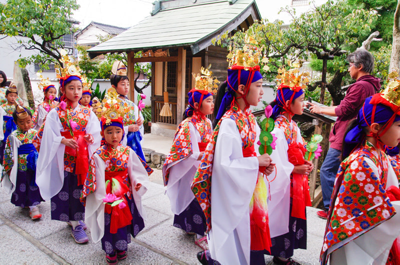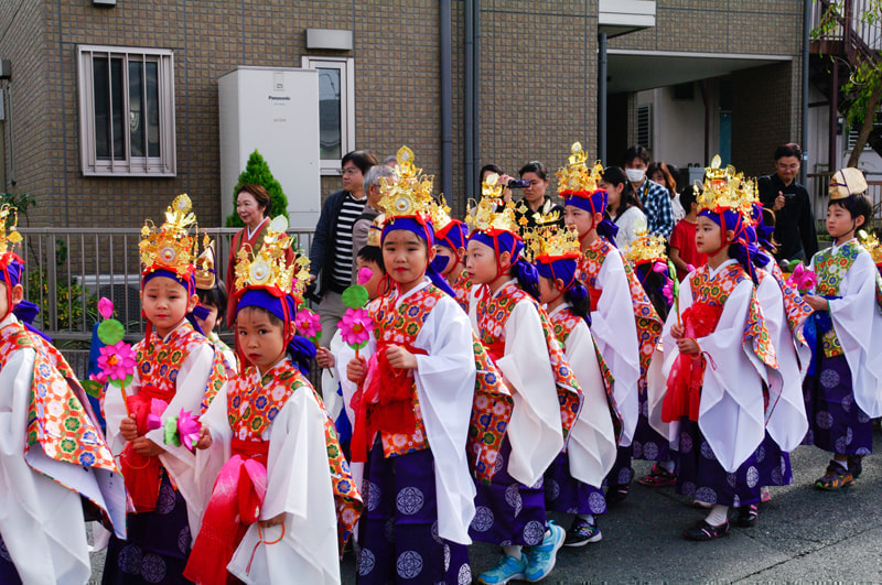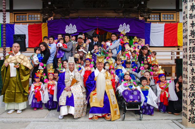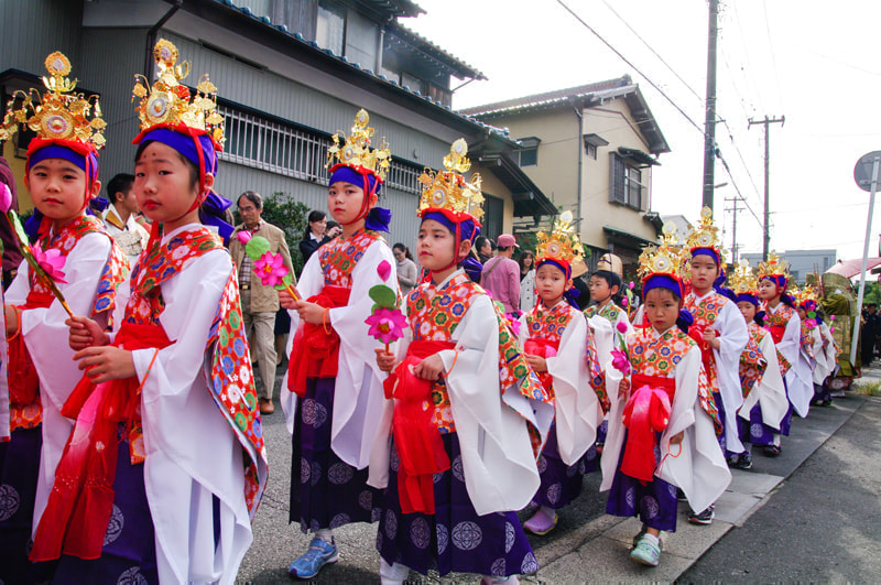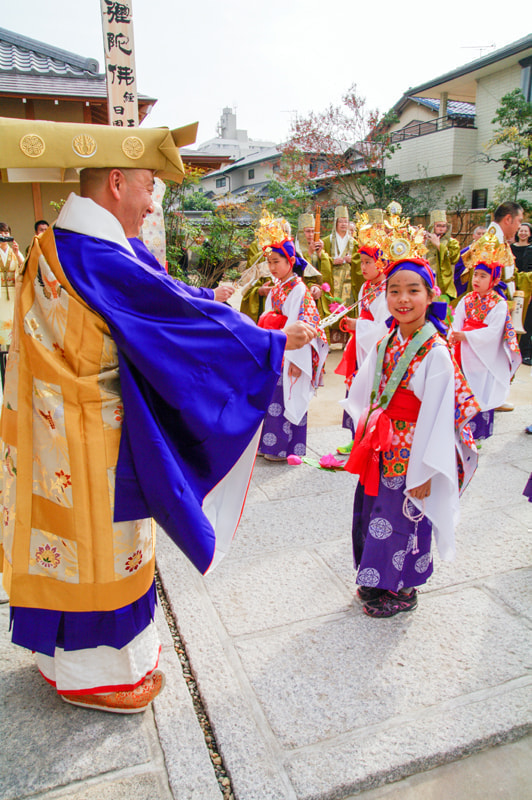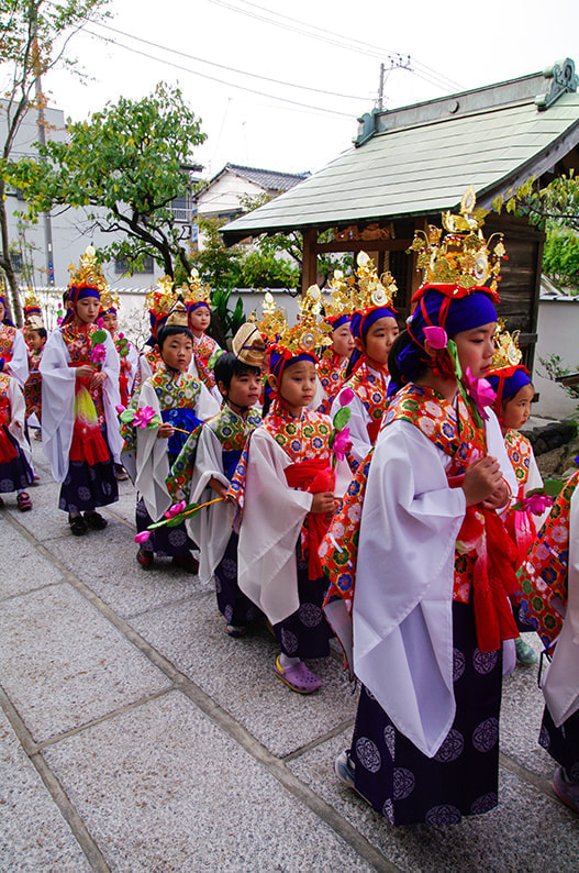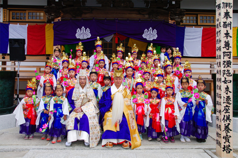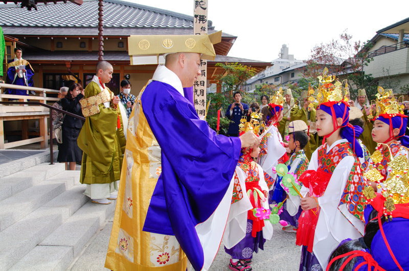 落成慶讃法要と天童稚児お練り行列のようすと
