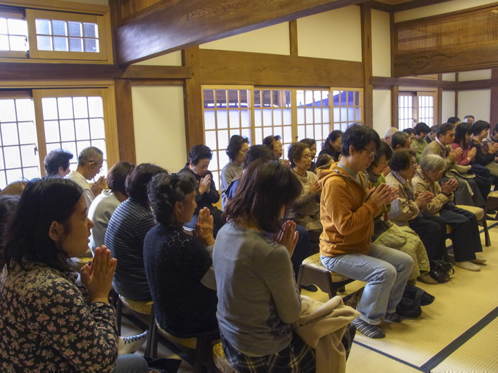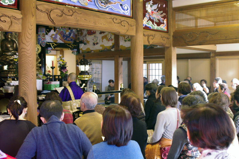 初念仏会 法要では、いわば法然上人のご遺言とも言われます「一枚起請文」を皆様ご一緒に、声を出してお読みいただきます。法要に先立ち、落語家の柳家 我太楼師匠のお噺を、皆さんにお楽しみいただいたときの様子です。 皆様と「一枚起請文」をお読みしました。 初念仏会の様子 施餓鬼会 毎年、6月の第一土曜日に厳修されます皆様、本堂にお集まりいただき 、餓鬼等を供養する法要です。客殿では、前日よりお手伝いいただいた皆様による、手作りちらし寿司を皆様にお召し上がりいただきます。 施餓鬼会の様子 十夜会 皆様、本堂にお集まりいただき 毎年、10月の第3土曜日に厳修されます。 十夜会の様子 光林寺について 私たちの宗旨 年中行事 永代供養墓・納骨墓 光林寺墓地 ペットの供養 仏像と仏画刺繍 天井絵 庭と伽藍整備事業 落成慶讃法要 光林寺の散華 アクセスと連絡先 お知らせ